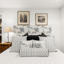 King sized bedroom with lush hand-sprung king mattress adorned with pure french linens, you’ll want to stay forever!