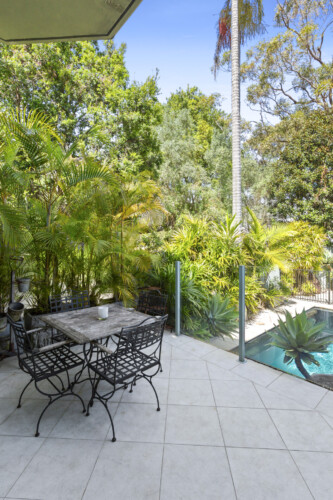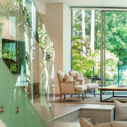 Wake up to natural light streaming through floor-to-ceiling windows and unwind by the sparkling private pool surrounded by tropical gardens. The spacious living area opens to an alfresco dining space, perfect for morning coffee or sunset drinks.