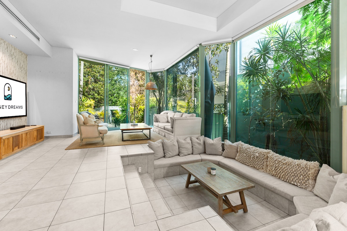 • The living area features a stylish sunken lounge. Families with young children should take extra care and consider this design feature before booking.